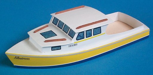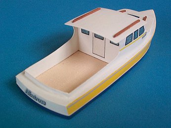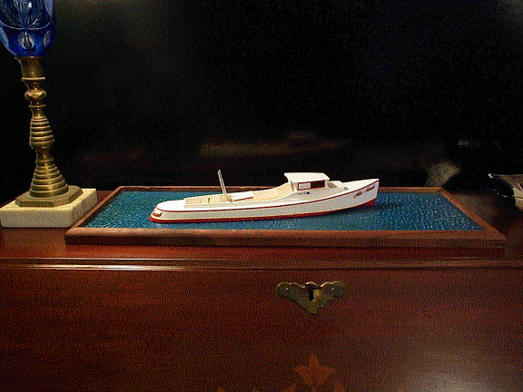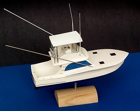 3. Completed. A rare and beautiful Cabin-Cruiser/Sportfisherman whose name I can't mention because it is a surprise 2000 Christmas present. I can now reveal that it was the "ANCHORAGE", a Forest Johnson Prowler. See at the top of the page.
